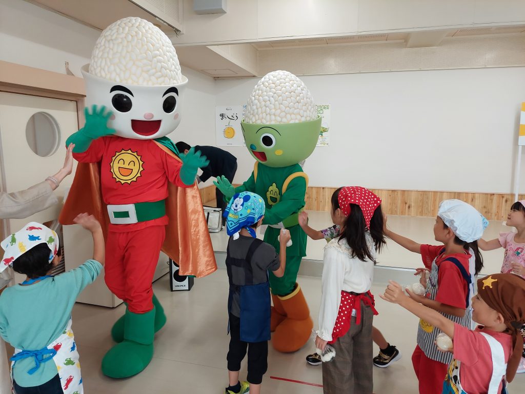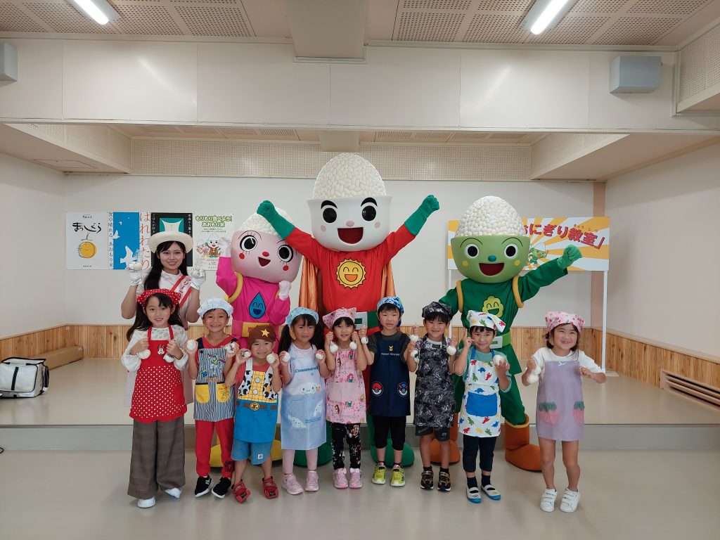 10月7日(火)、三川目保育園園(三沢市)で、お米大使による「おにぎり教室」を開催しました。音楽に合わせ、園児と先生のみなさんが「お米大使ダンス」を元気いっぱいに歌って踊り、会場はとても明るく元気な雰囲気となりました。